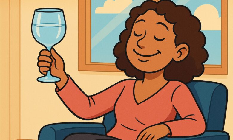 Respirou fundo, pegou o copo de água e, num gesto simbólico, brindou com o ar.