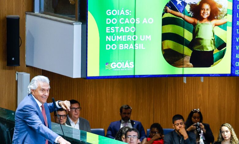 O governador Ronaldo Caiado fez discurso de agradecimento pela parceria com a Assembleia Legislativa de Goiás (Alego), durante sessão solene…